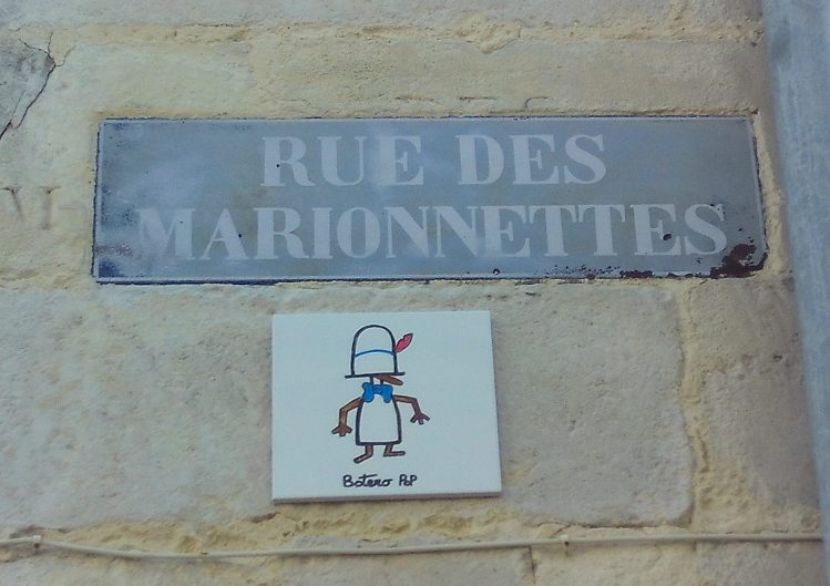 Un parcours de 17 plaques de faïence (comme la Charente-Maritime) dans toute la ville… Des pochoirs et des collages…