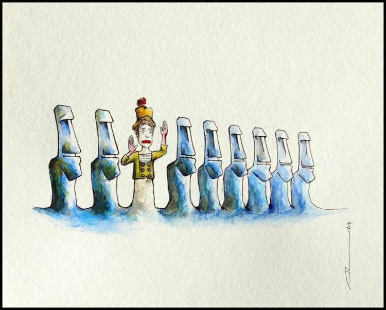 Les statues Moaï de l’ïle de Pâques commentent ainsi l’actualité en dessin, à leur manière…