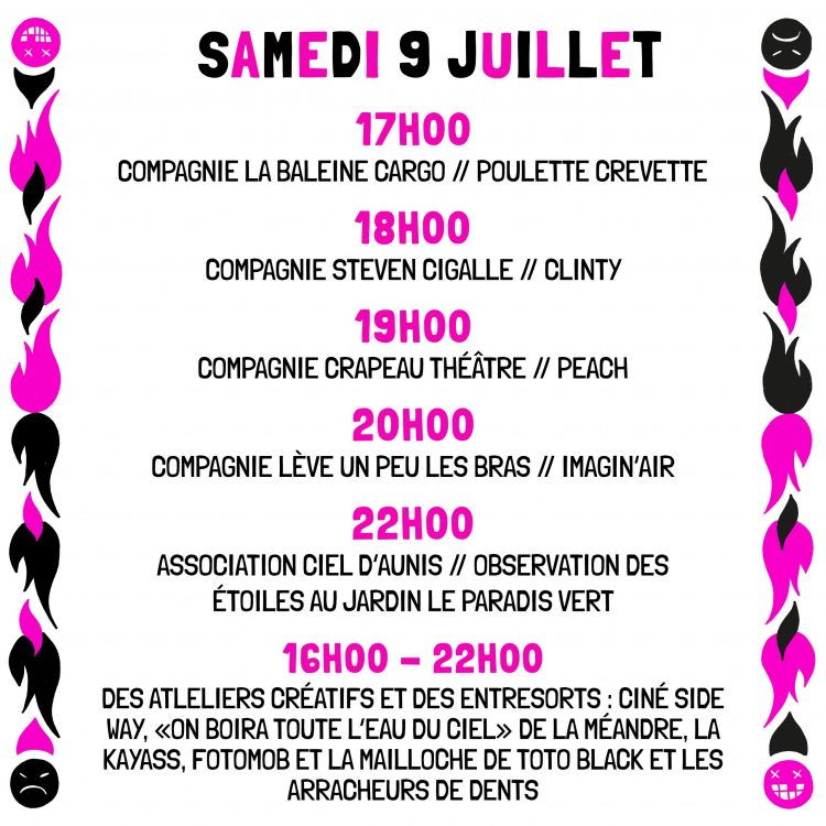 Au programme cette année : Danse, théâtre d’improvisation, bal, musique, voltige, spectacle jeune public, cinéma de plein air, entresorts…