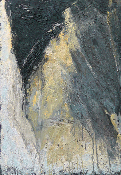 Le minéral (montagne, rocher, falaise) est un thème récurrent dans l’œuvre de Jocelyne Barbas. L’artiste présente ici une série de tableaux intitulée « Montagnes Célestes ».