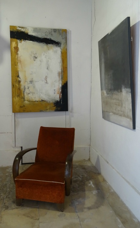 « Depuis mes premières toiles, je cherche la puissance expressive de la matière, complètement détachée de tout motif pictural. La composition peut être monochrome, en recherche de profondeur dans les noirs et les couleurs minérales, et parfois en recherche de graphisme laissant des traces, des empreintes. »